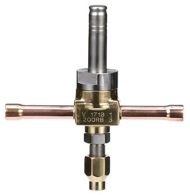 3/8" ODF x 3/8" ODF, 3/16" Port, 680 PSIG, NC, Pilot Operated, 2-Way, Refrigerant Solenoid Valve with Manual Stem